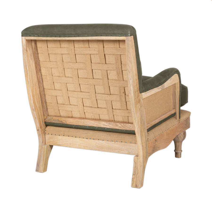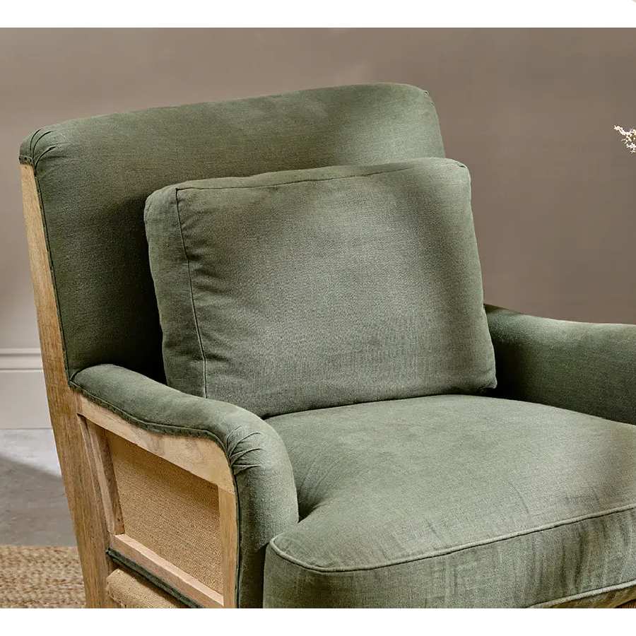 Deconstructed olive linen armchair