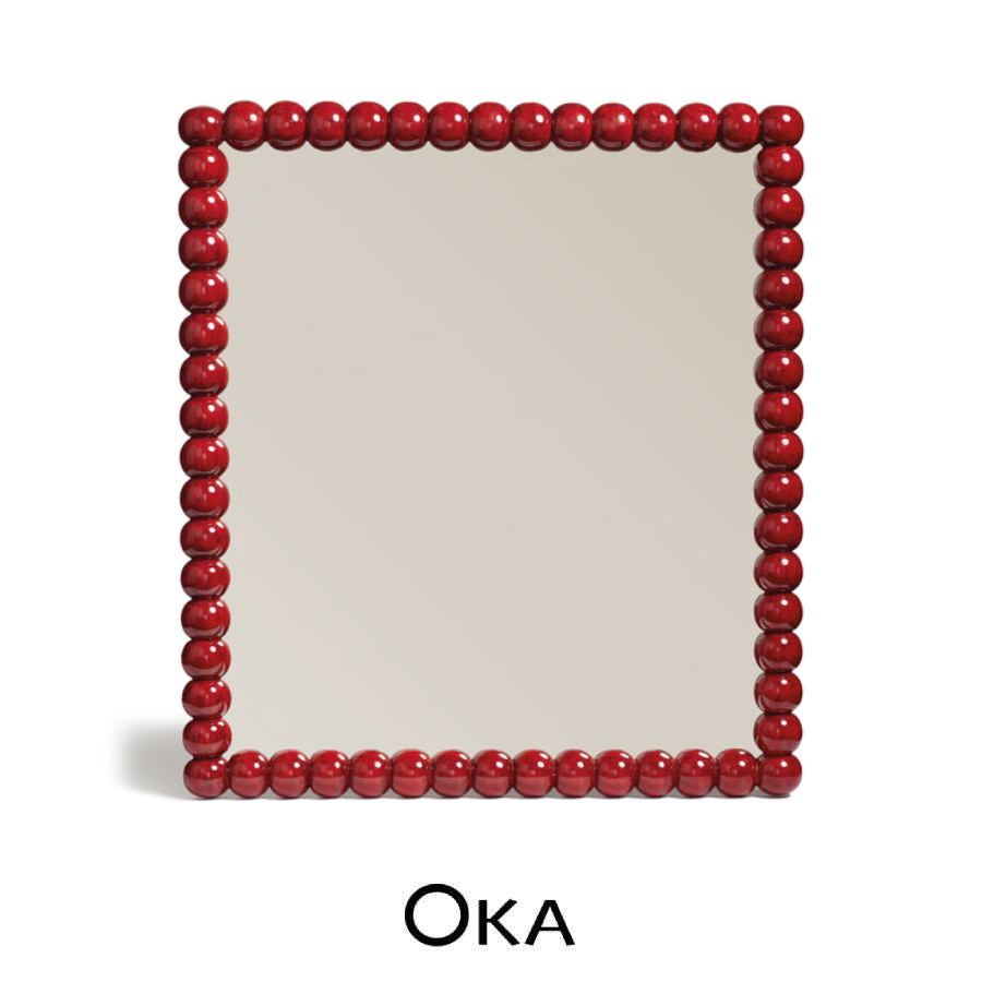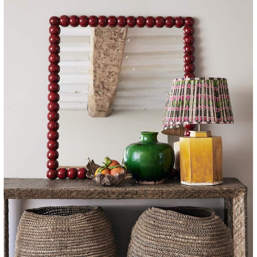 Make a bold statement with this original mirror, hand-carved from mango wood into charming spherical ‘bobble’ shapes inspired by 17th-century bobbin furniture and painted in a vibrant Chinese-red high-gloss finish to transform your wall into a sculptural focal point.