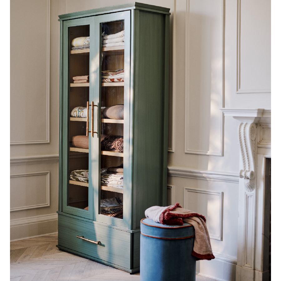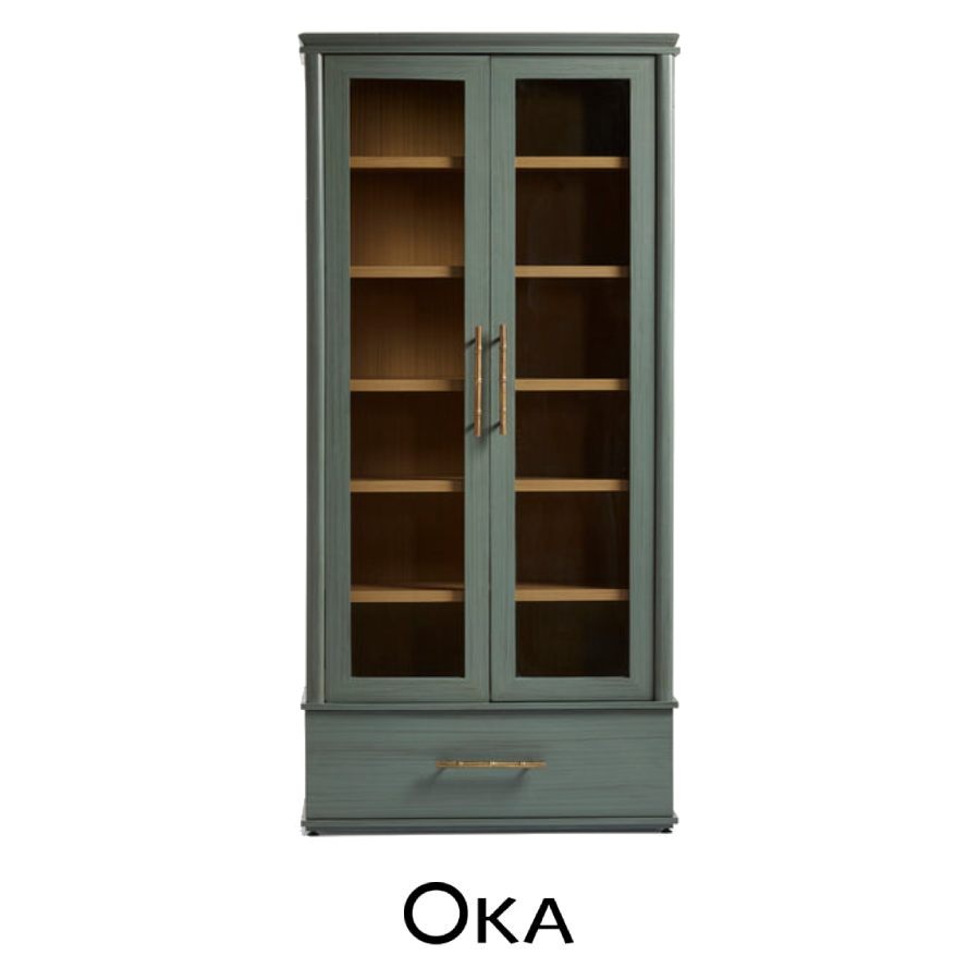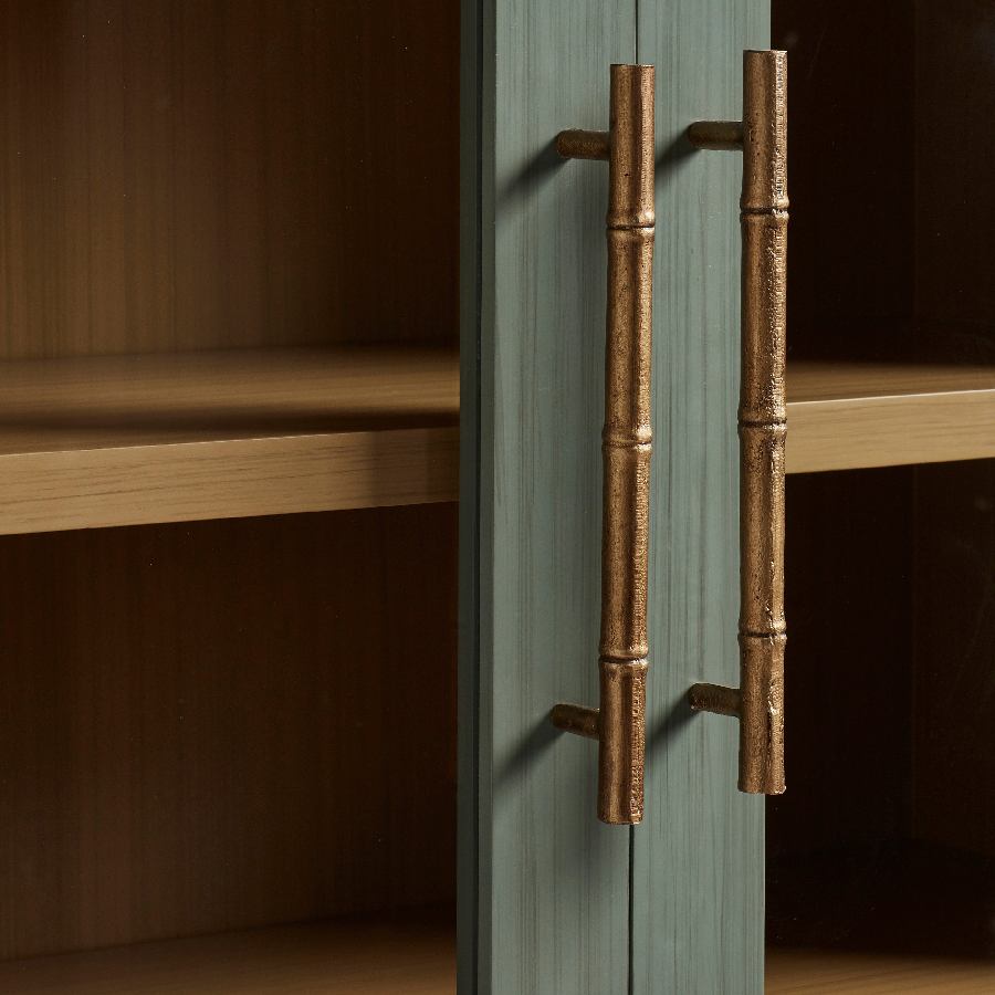 Stunning cabinet that combines classic craftsmanship with fresh colour. Featuring elegant panelled doors, brass bamboo handles and generous interior storage, it’s perfect for dining rooms or living spaces. Its soft seafoam finish adds a refined, calming touch, while the timeless silhouette ensures lasting style and everyday practicality.