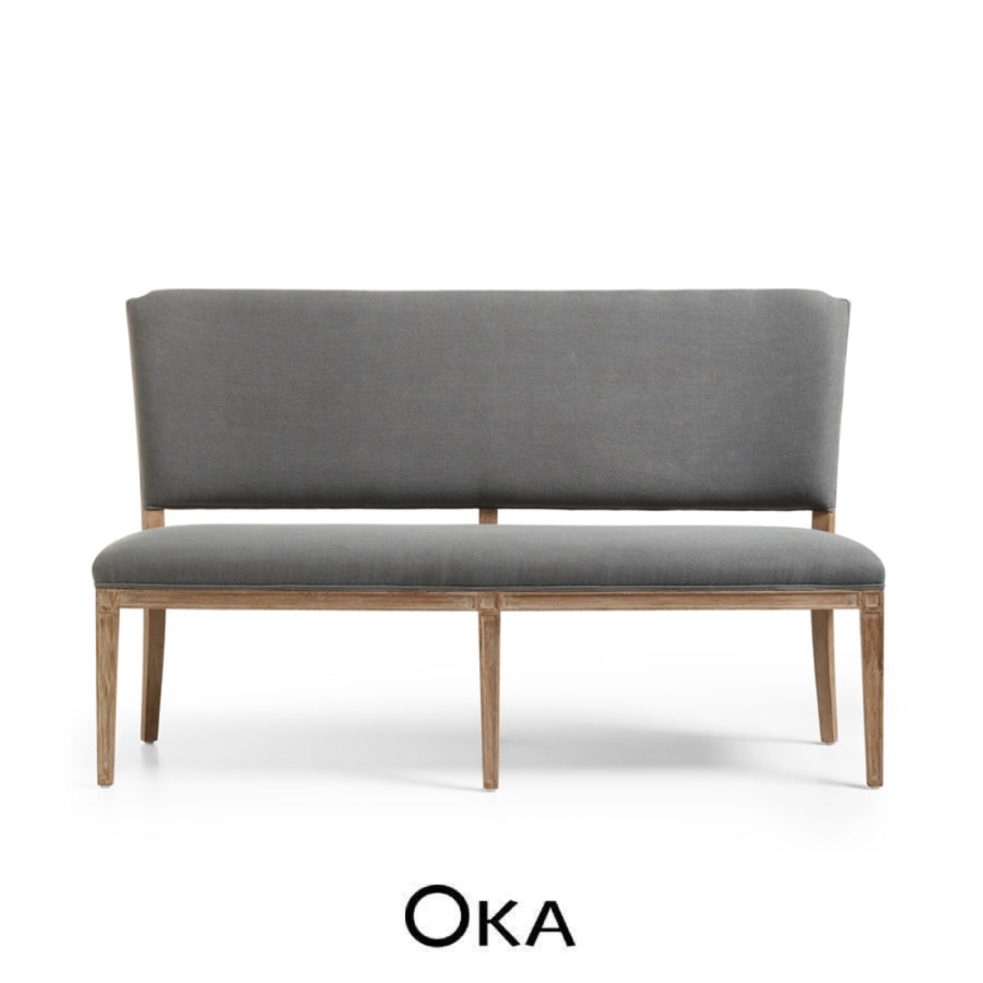 Wood and grey linen bench