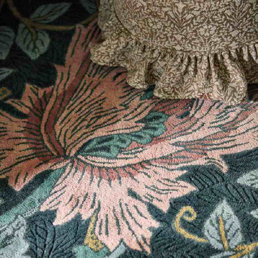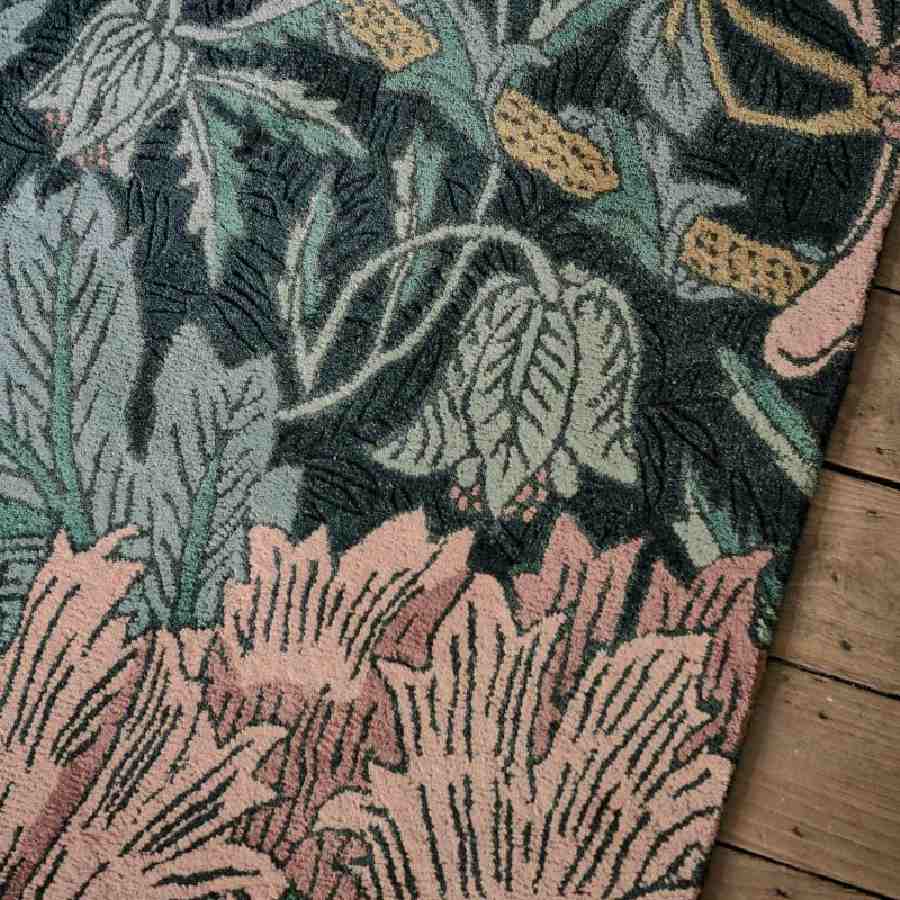 Bring enduring style and classic motif to your space with this soft hand-tufted in pure wool rug. It revives the iconic 1876 design while featuring intertwining foliage and florals in a rich teal palette. A sophisticated foundation for any living area.