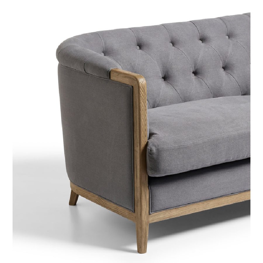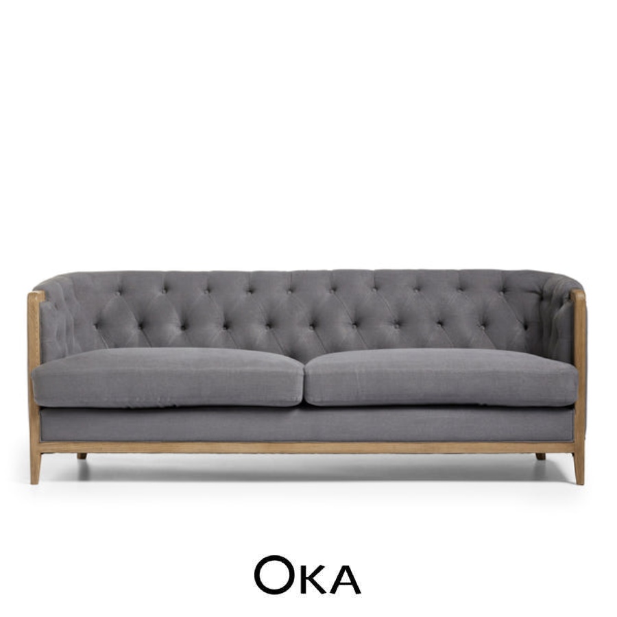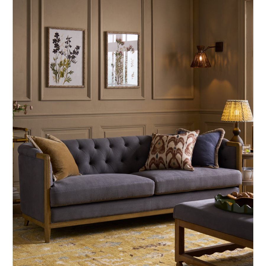 Elevate your living space with this elegant sofa upholstered in rich linen and anchored by a weathered oak frame. This timeless piece brings sophistication and comfort in equal measure. With its clean lines and sumptuous seating, it’s the perfect foundation for a stylish and serene home.