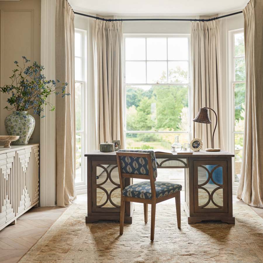 The Vincent chair in petrol pairs sculptural elegance with everyday comfort. Upholstered in richly toned fabric, its curved backrest and refined proportions create a striking yet inviting silhouette. Designed to elevate dining spaces, it blends statement style, supportive seating and timeless sophistication in one distinctive piece.