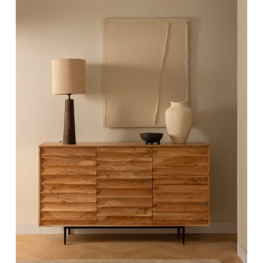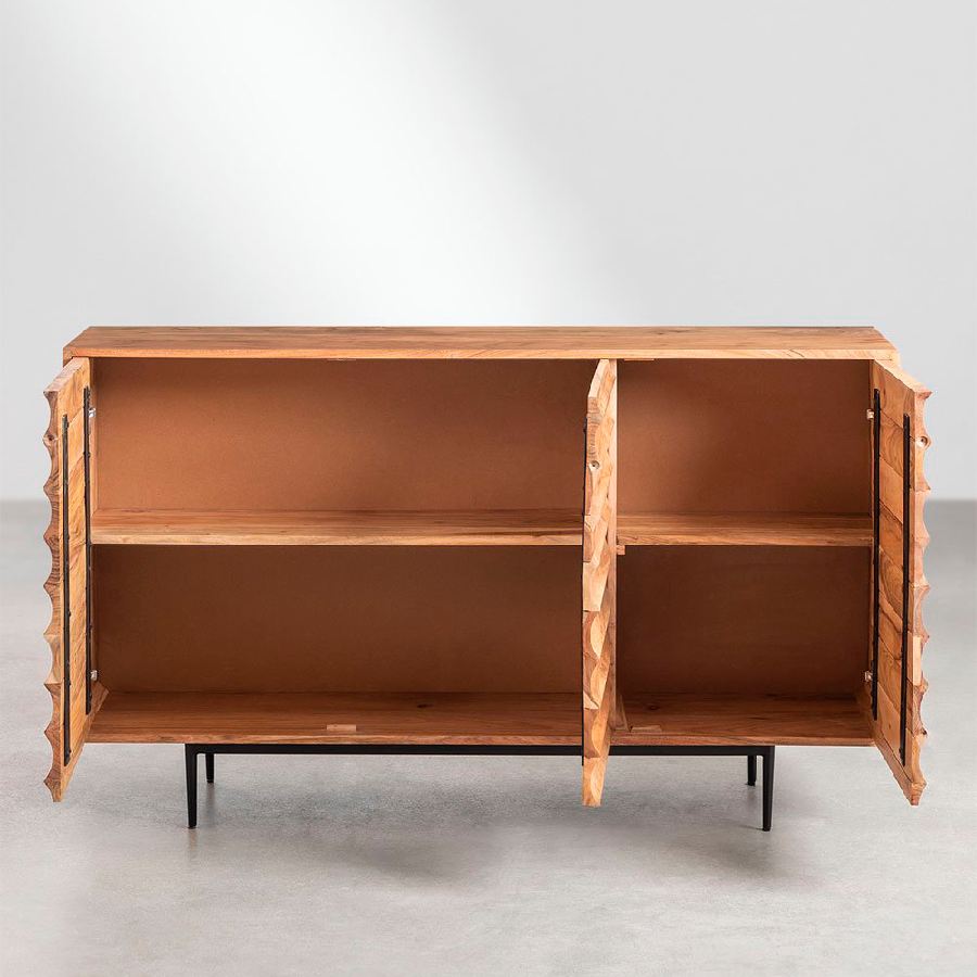 Buffet en bois d’acacia avec des veines naturelles équipé de trois portes à ouverture ingénieuse et soutenu par des pieds en fer modernes. Il conjugue élégance, robustesse et grande capacité de rangement pour une déco aussi pratique que stylée.