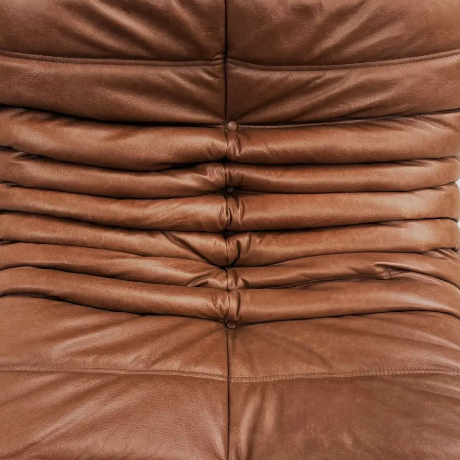 Fauteuil vintage classique Togo en cuir de pin de Dubaï, conçu par Michel Ducaroy pour Ligne Roset. Pièce emblématique du milieu du siècle des années 1970. Cet article d’occasion ne présente aucun défaut. Il a été restaurée avec un nouvel revêtement et de la mousse.