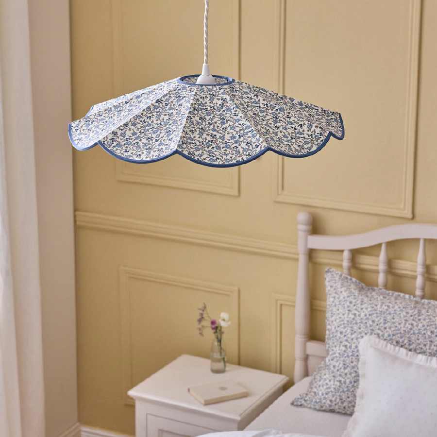 Suspension en voile de coton dessin fleurs Liberty bordé d’un biais.
