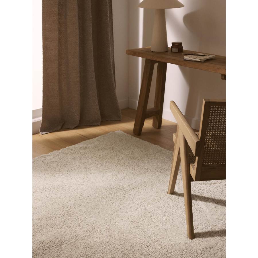 Tapis à poils longs élégant et confortable de couleur crème. Une pièce qui ajoutera une touche chaleureuse à n’importe quelle pièce.