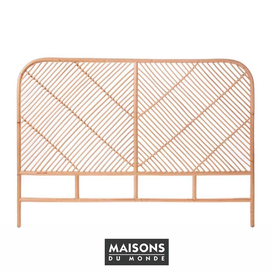 Tête de lit en rotin finition naturelle de lignes douces et bohèmes pour les lits de 140cm. Facile à installer, sans système de fixation, elle se cale tout simplement entre le lit et le mur.