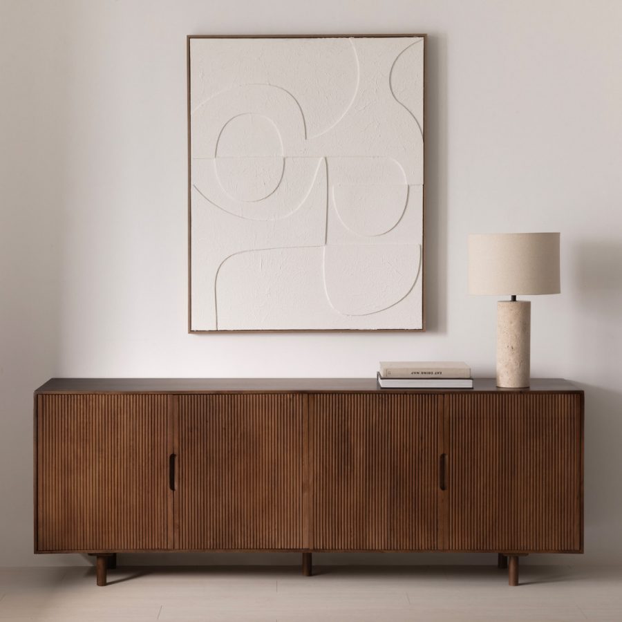 Elegante y sofisticado aparador de cuidada estética fabricado con madera maciza de mango.