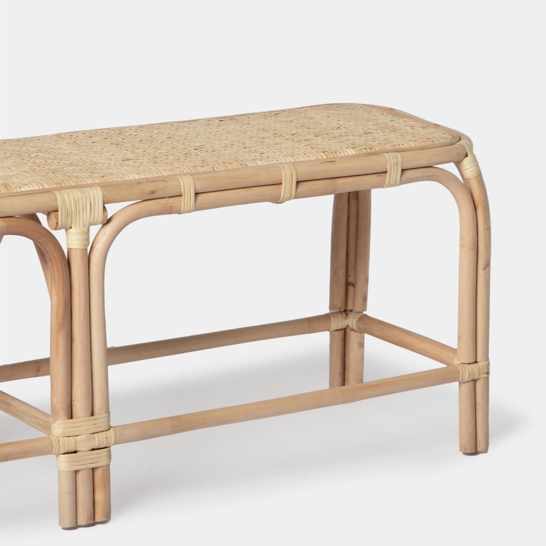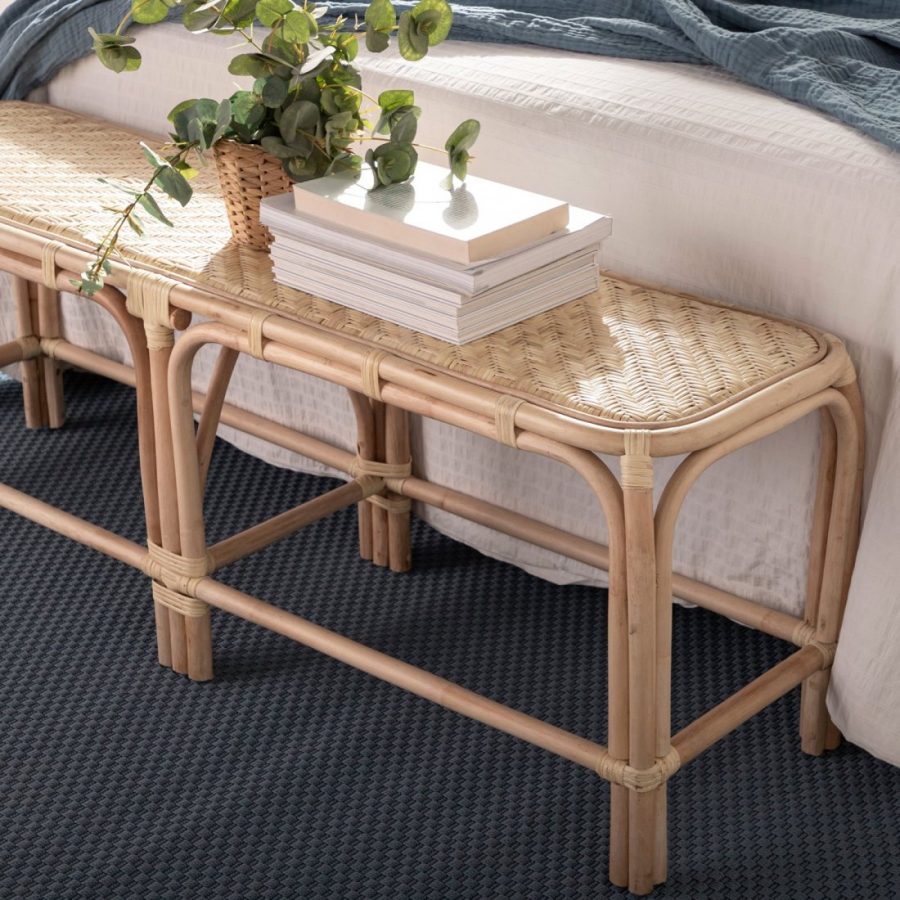 Banco fabricado artesanalmente con ratán natural. Quedará perfecto como pie de cama en tu dormitorio o en el recibidor.