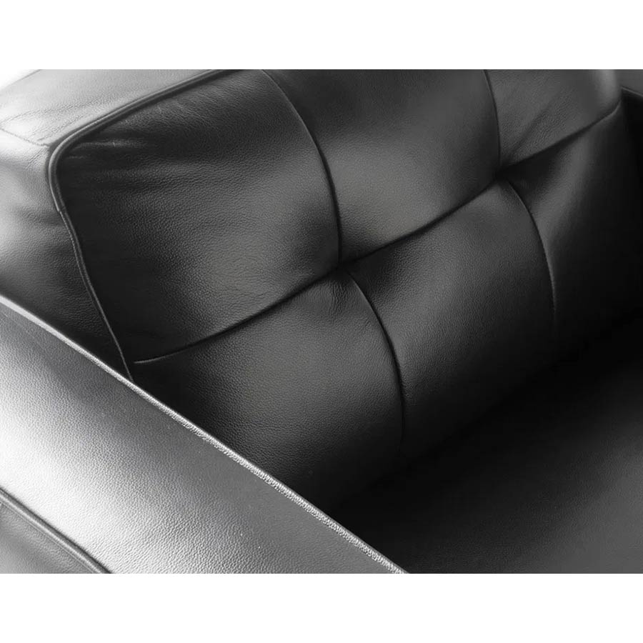 Elegante y sofisticada butaca con reposabrazos tapizada en piel de vacuno en color negro con capitoné