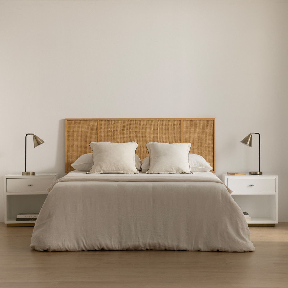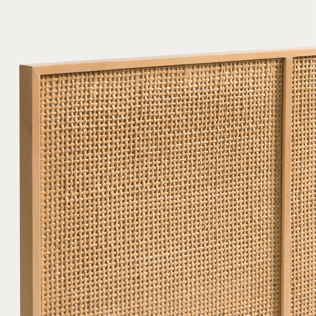 Coqueto cabecero que combina la chapa de madera de roble con el ratán. Una elección perfecta para diferentes ambientes y estilos.