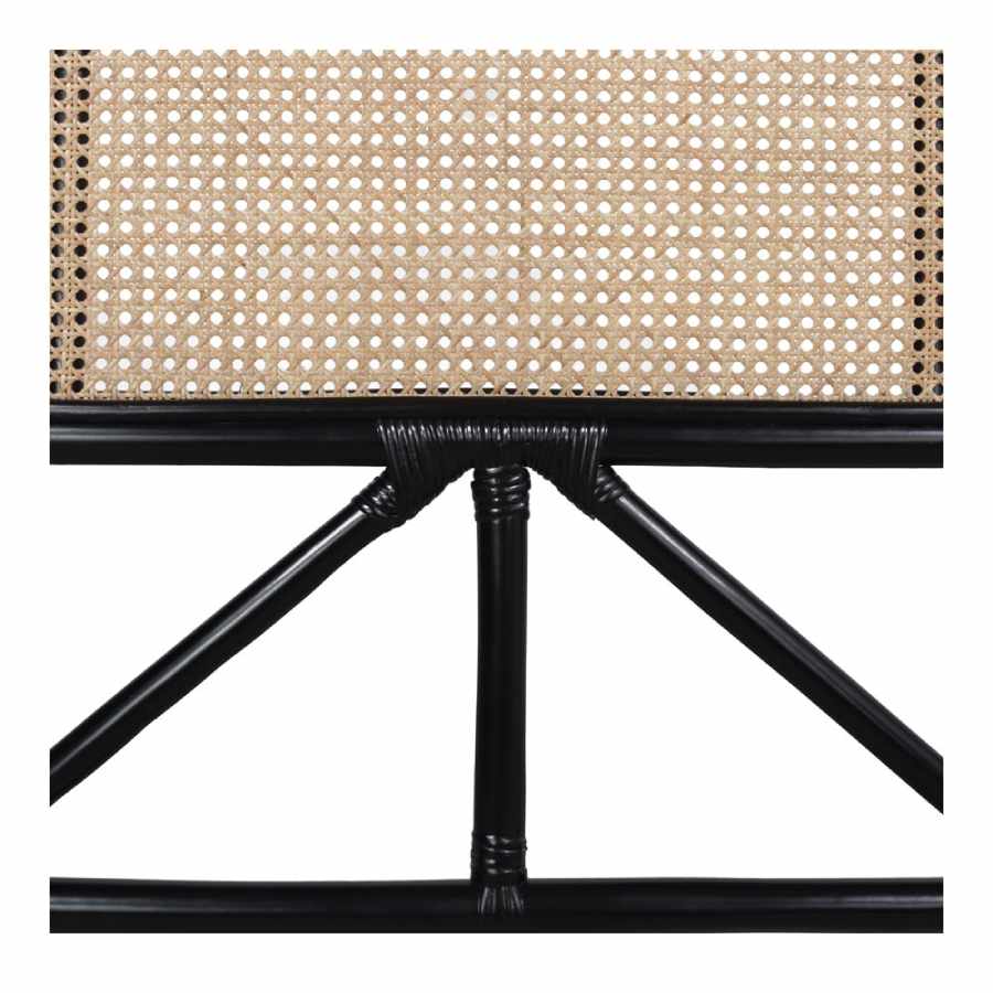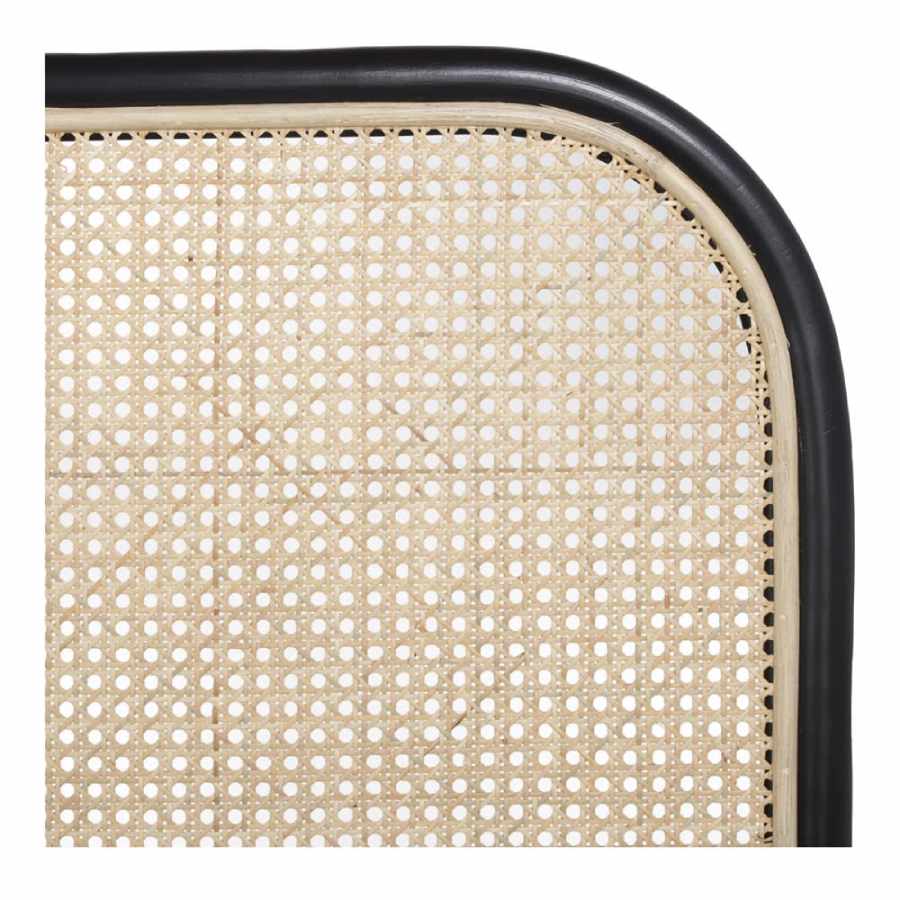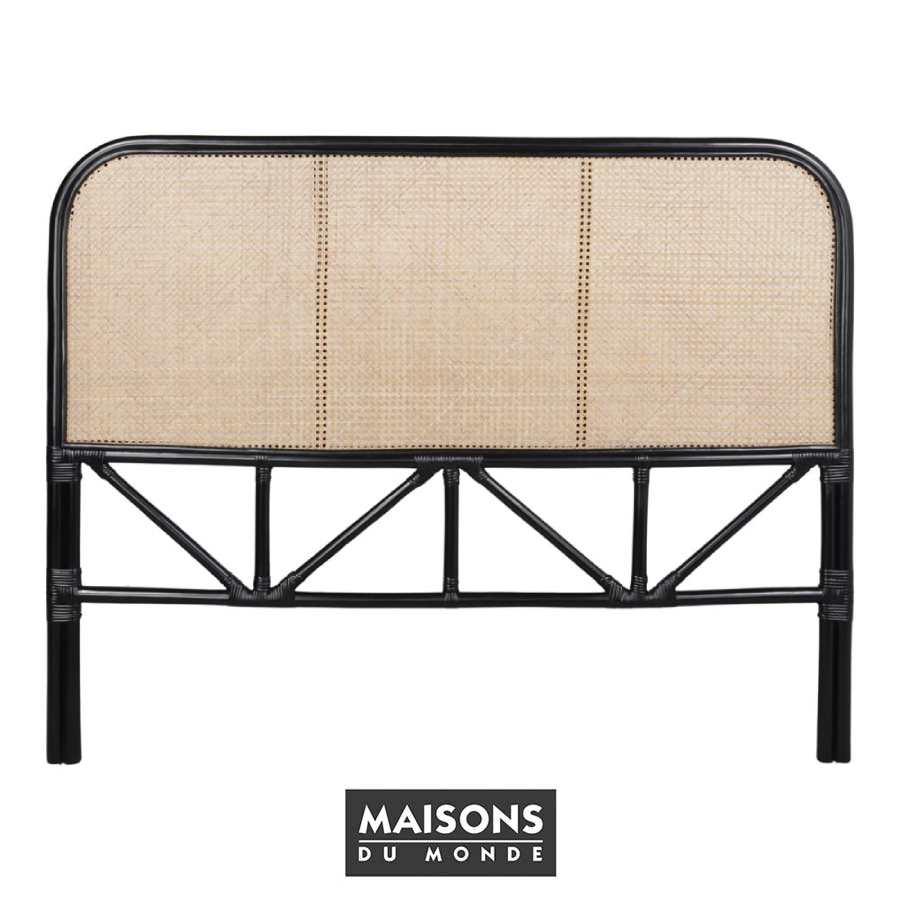 Elegante cabecero de estilo Japandi fabricado en bambú tintado en negro y rejilla de ratán natural tipo cannage.