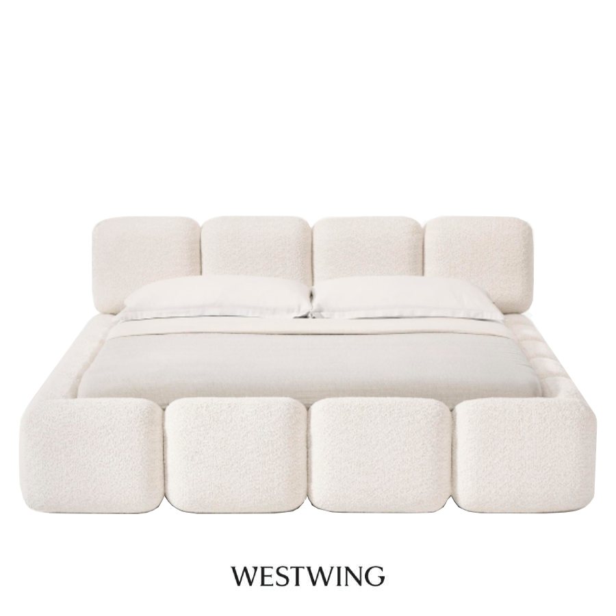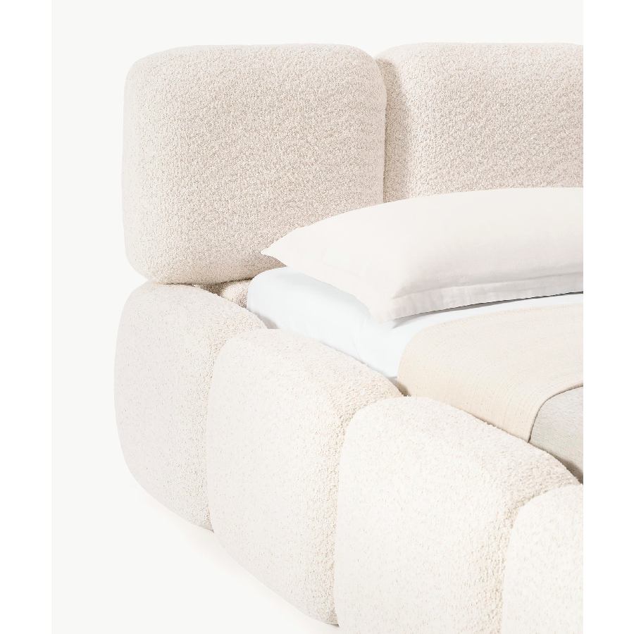 Cama acogedora de diseño único con burbujas redondas tapizadas en borreguillo bouclé blanco que creará un estilo moderno pero atemporal. El cabecero tapizado está disponible en diferentes alturas. Está disponibles con o sin espacio de almacenamiento y en diferentes colores.