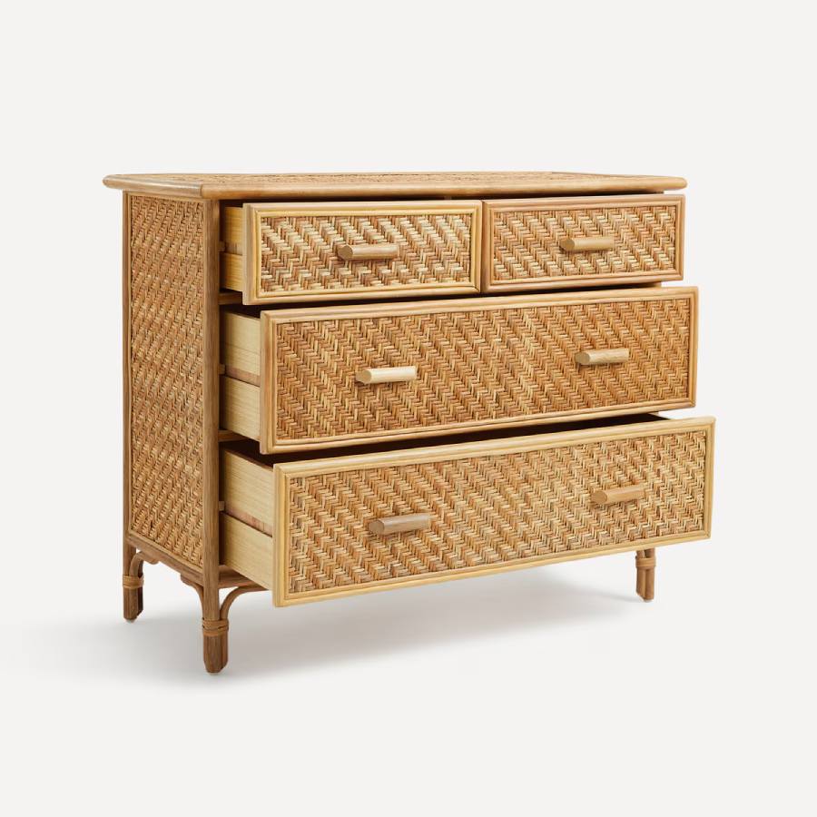 Cómoda de ratán con 4 cajones