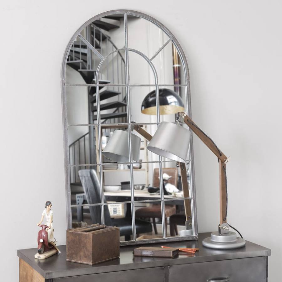 Espejo arqueado en forma de ventana de metal que dará luz y amplitud a tus estancias.