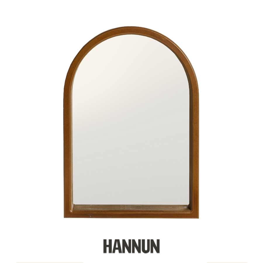 Espejo de madera rectangular con forma de arco en su parte superior. Fabricado artesanalmente.
