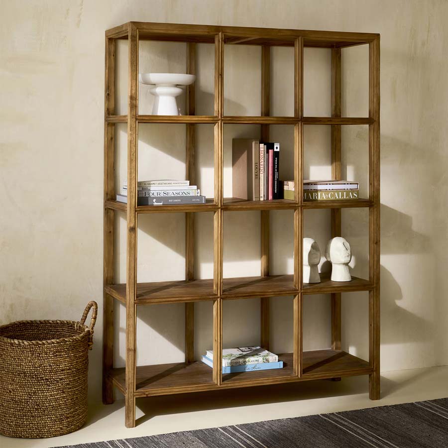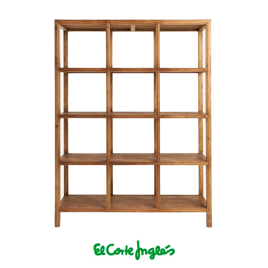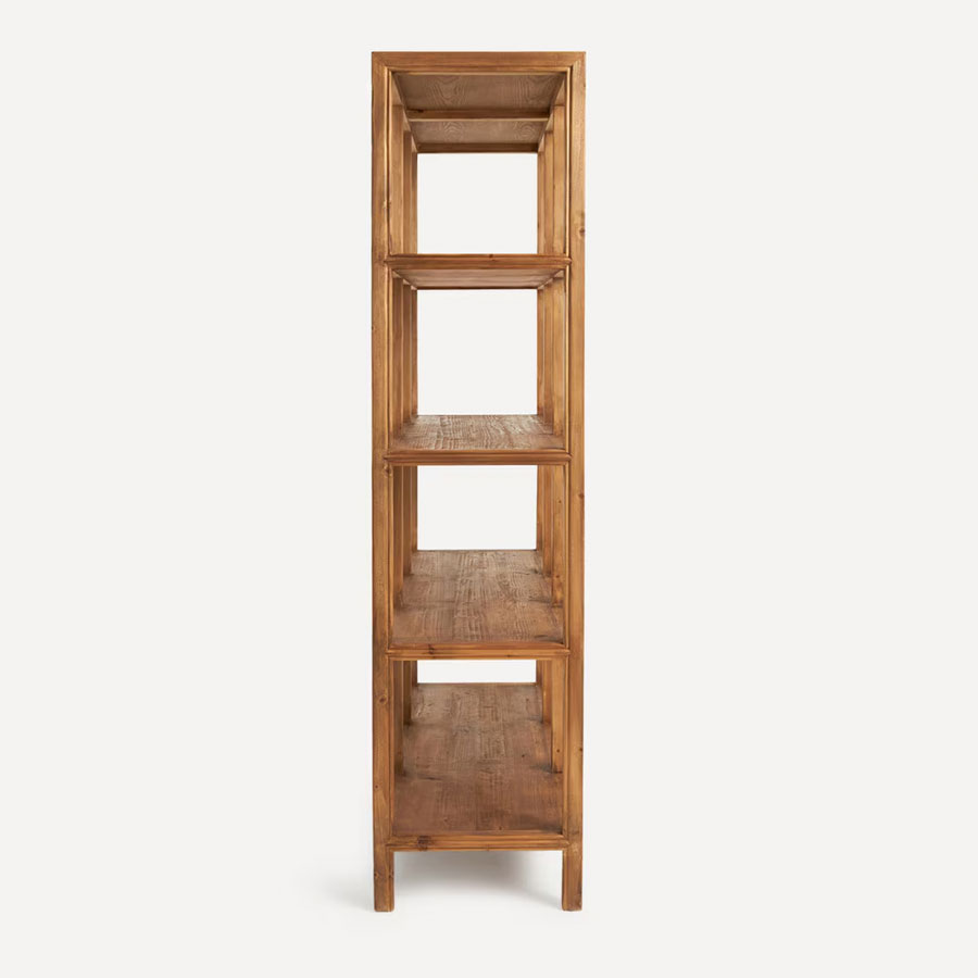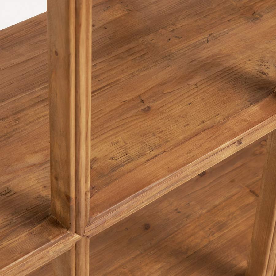 Robusta estantería de madera maciza de pino reciclado con diferentes estantes para que tengas el espacio de ordenación que necesitas.