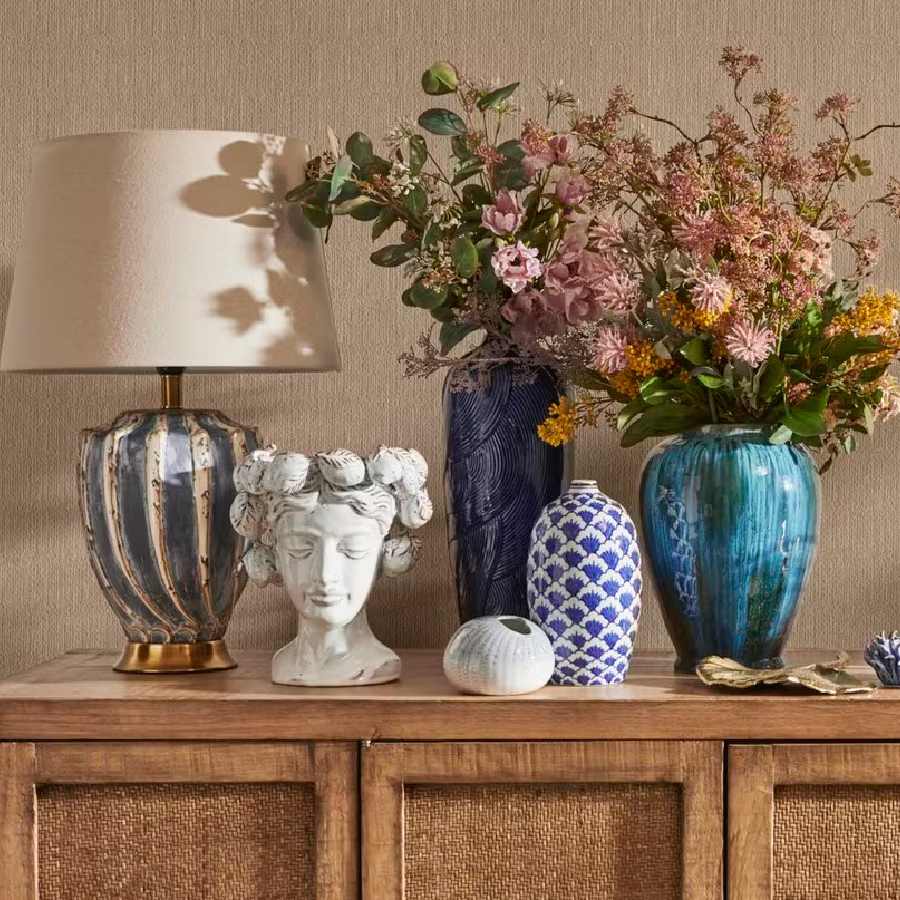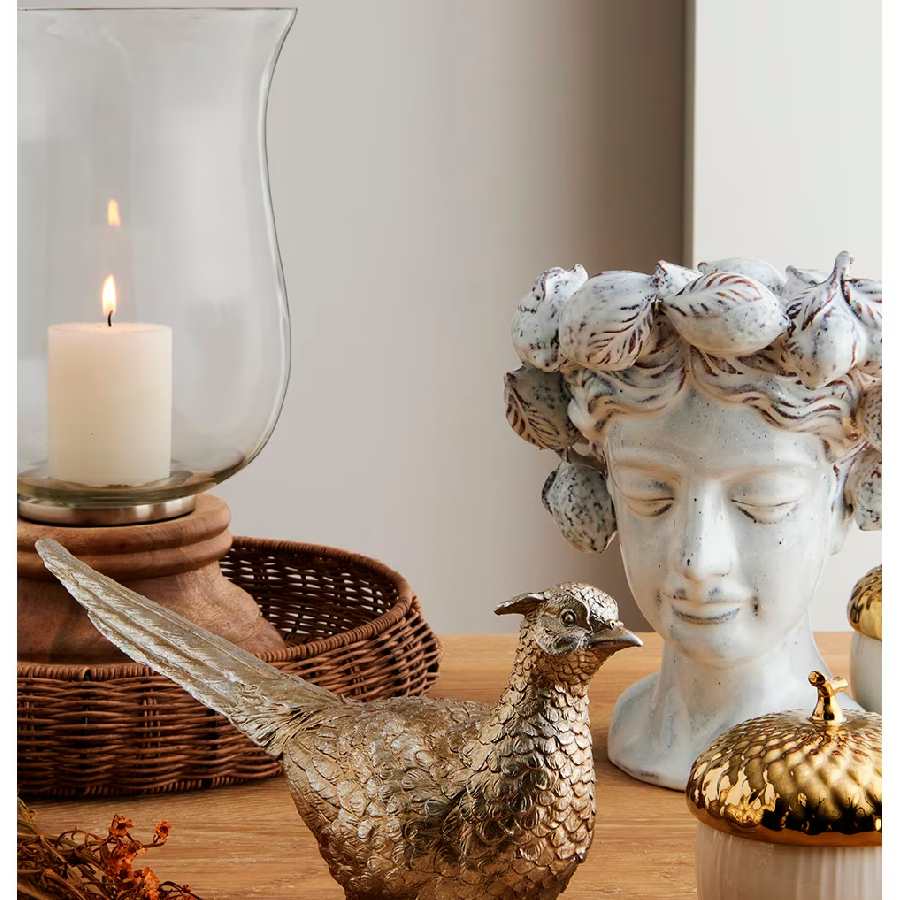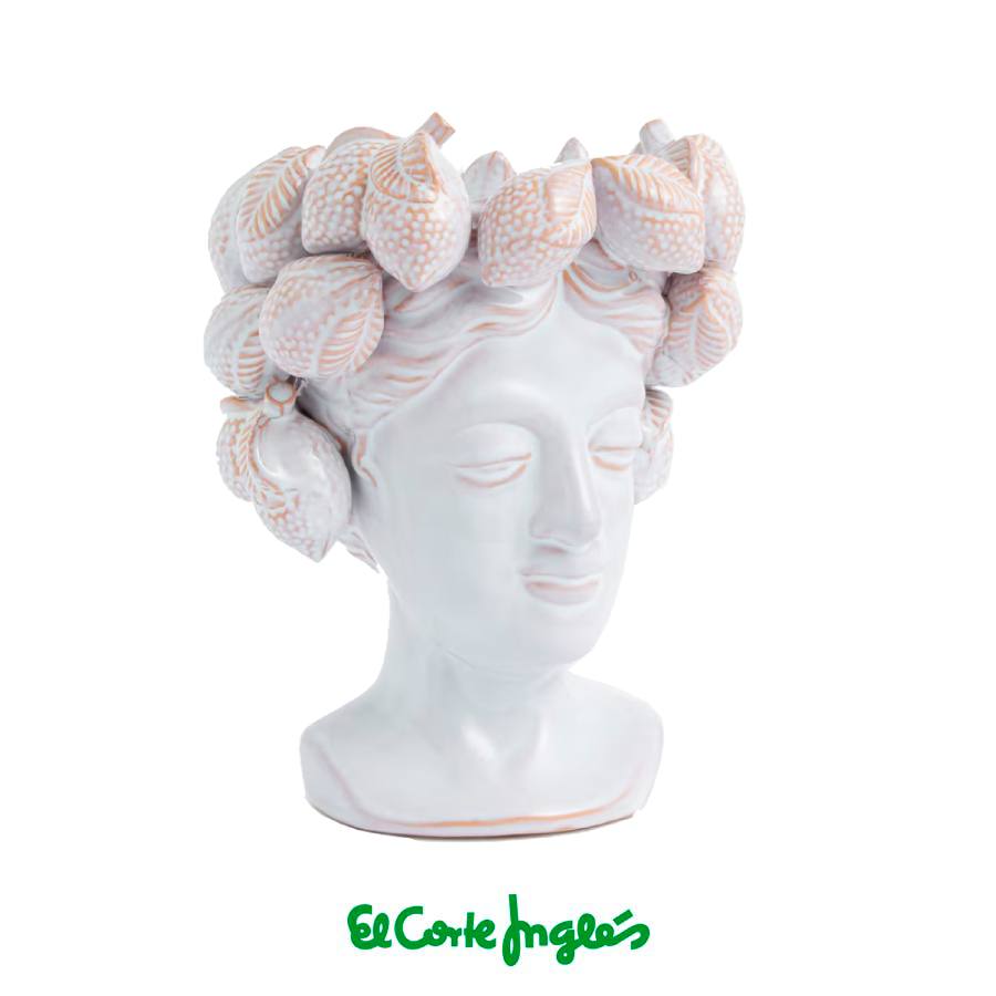 Bonito jarrón de inspiración helénica, con forma de cabeza de mujer, realizado en cerámica de color blanco grisáceo. Quedará perfecto con un bouquet de flores.