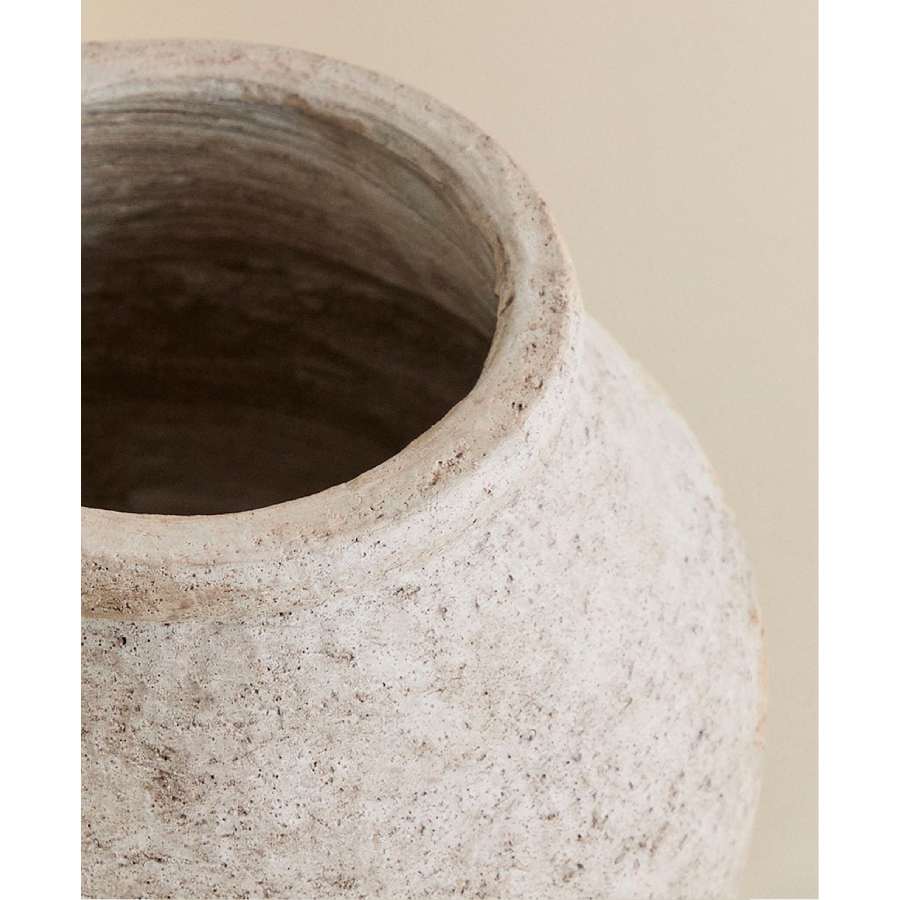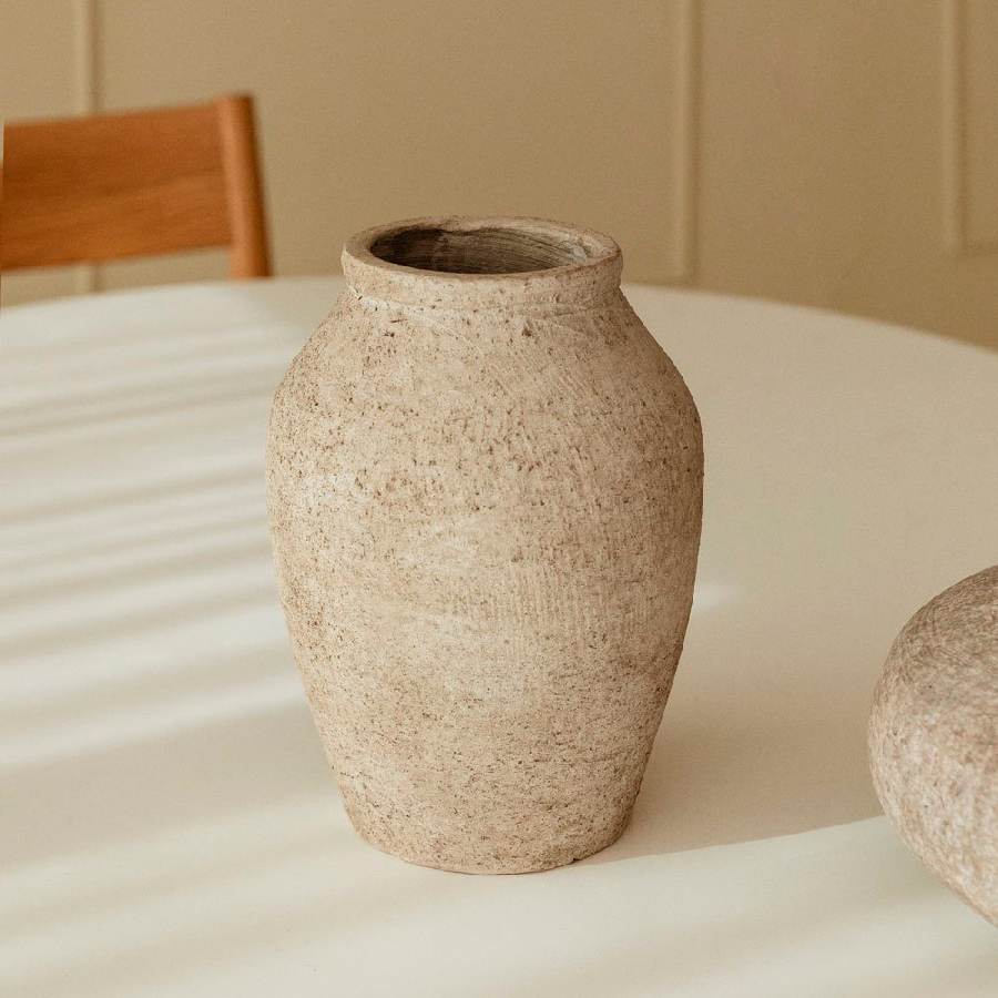 Jarrón decorativo de estética vintage y rústica, hecho de cerámica con acabado mate.