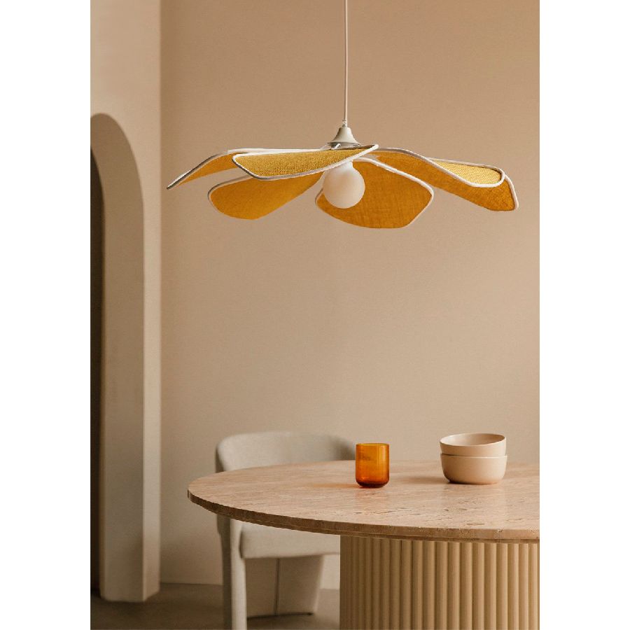 Lámpara de techo flor en lino amarillo