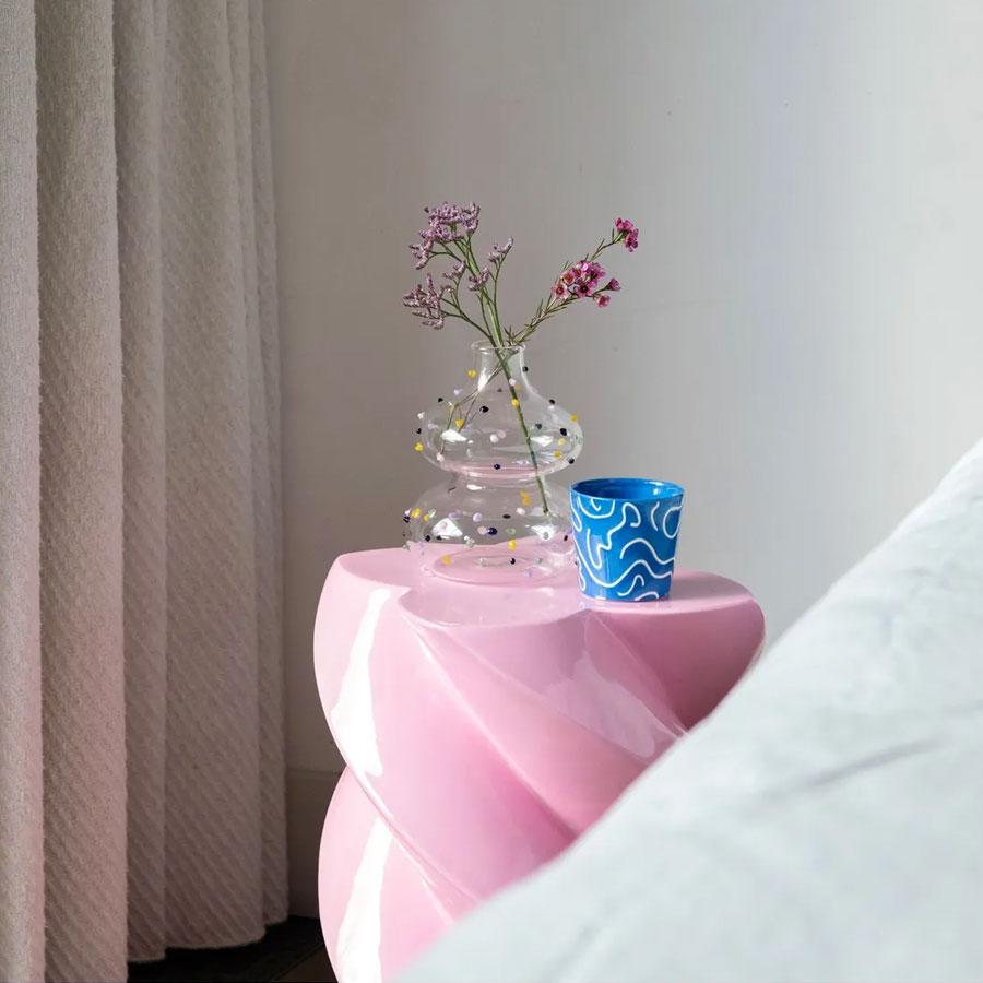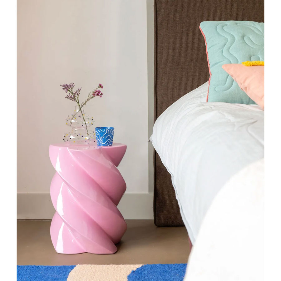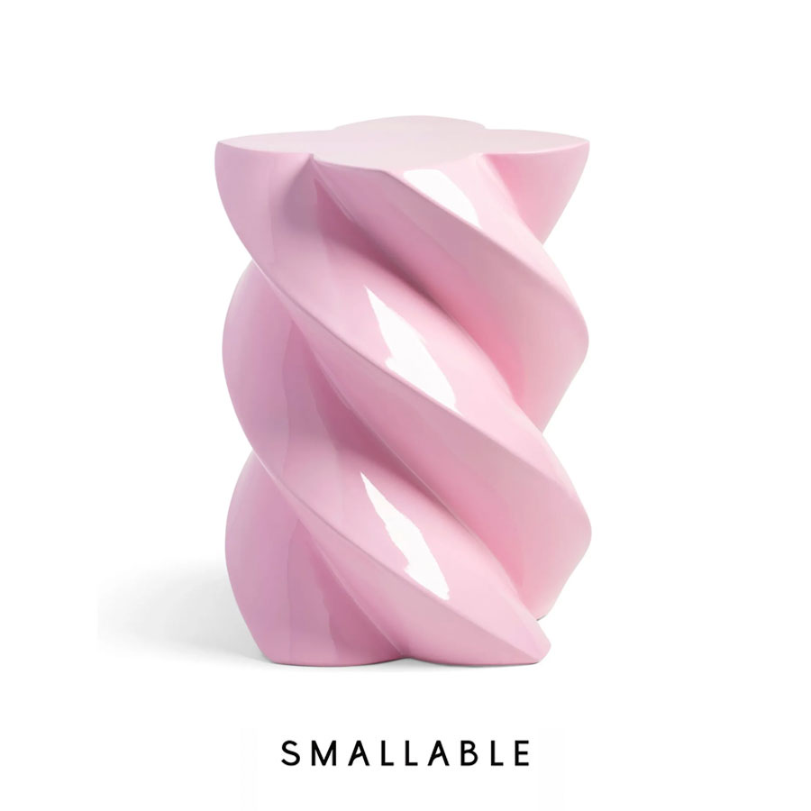 Original mesa auxiliar de color rosa con diseño en forma de malvavisco.