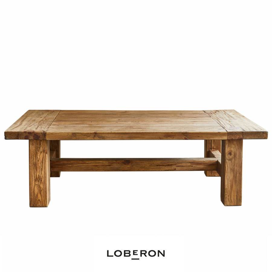 Bonita mesa de centro rectangular fabricada en madera de pino recuperada con sus pequeñas imperfecciones características. Una mesa sólida con patas robustas de aspecto rústico que combina perfectamente con un interior de estilo rústico.