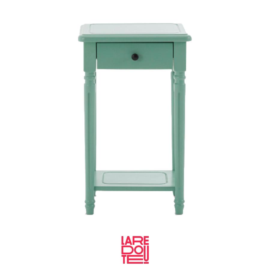 Práctica y decorativa mesita de noche con un cajón y un estante, fabricada en madera de pino. De estilo clásico reeditado.