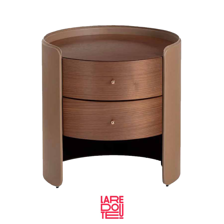 Mesita de noche de madera de nogal y piel