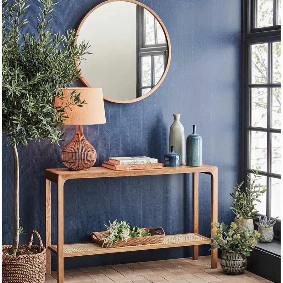 Papel pintado TNT (tejido no tejido) con estampado en forma de espiga en color azul.
