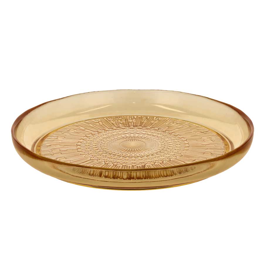 Plato de cristal acanalado en color ámbar de la marca danesa Bitz. Apto para lavavajillas.