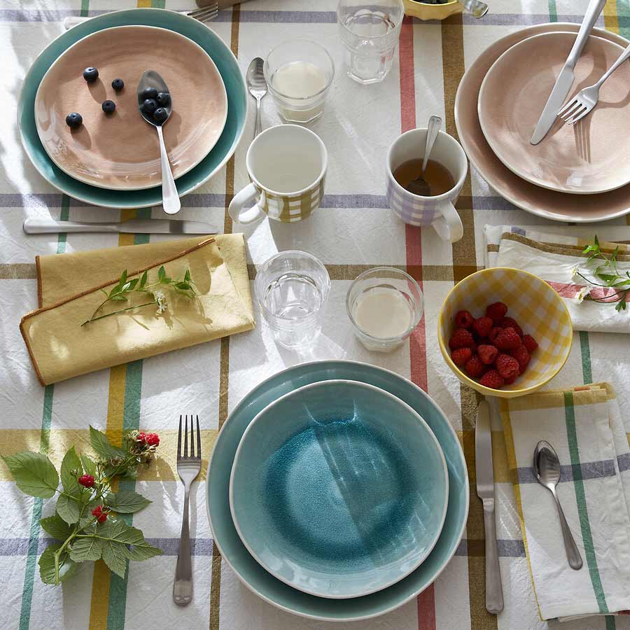 Plato de gres esmaltado verde con efecto agrietado. No apto para microondas y apto para lavavajillas. El acabado agrietado es un acabado artesanal, por lo que cada pieza es única.