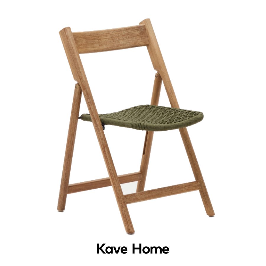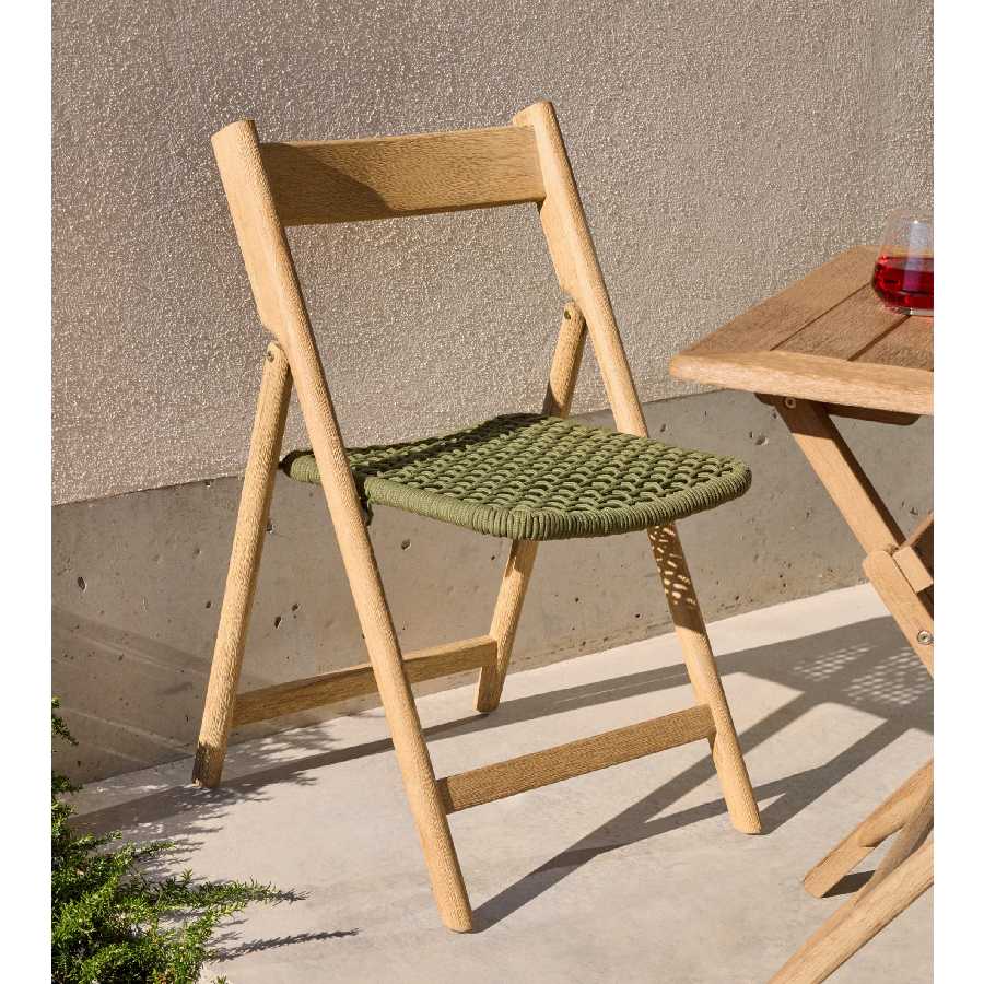 Silla plegable perfecta para las terrazas pequeñas. Disfruta de los espacios exteriores con esta práctica silla de madera maciza y asiento de cuerda en color verde.