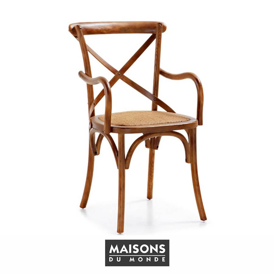 Tradicional y a la vez moderna silla de comedor de estilo colonial de madera con reposabrazos realizada a mano y terminada con un proceso artesanal.