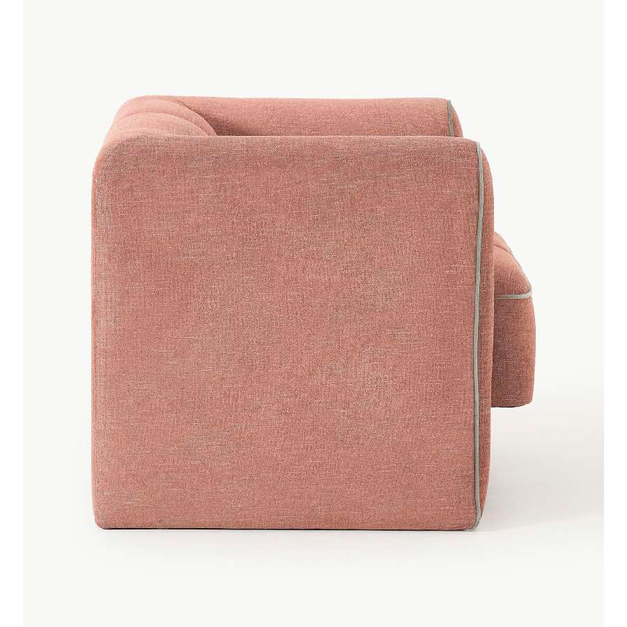 La gama Bobi de Westwing se caracteriza por un diseño de formas redondas y voluminosas acompañadas de un ribete en contraste que realza la silueta. Descubre este elegante sillón tapizado en color terracota con ribete verde oliva.