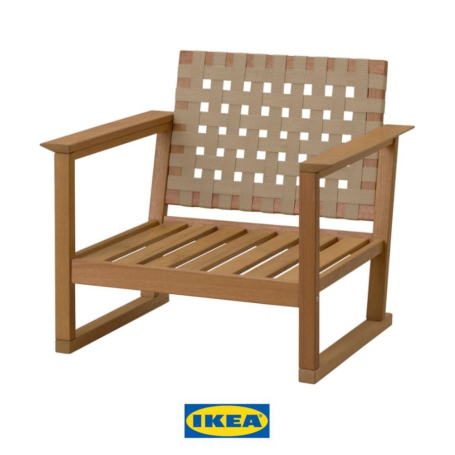 Sillón de exterior de madera resistente con asiento y reposabrazos amplios. No incluye cojines. Puedes añadirles los cojines de la series FRÖSÖN/DUVHOLMEN para una mayor comodidad.