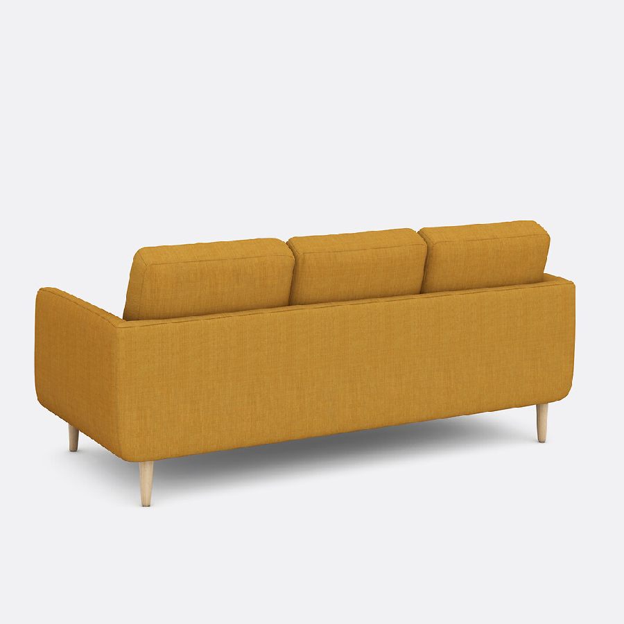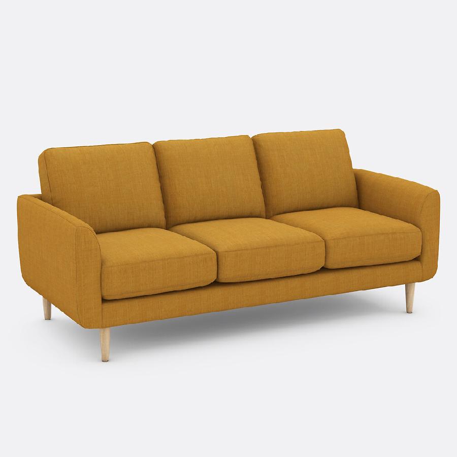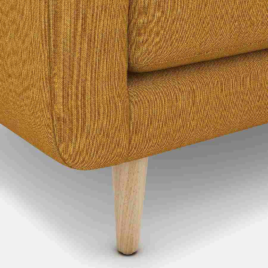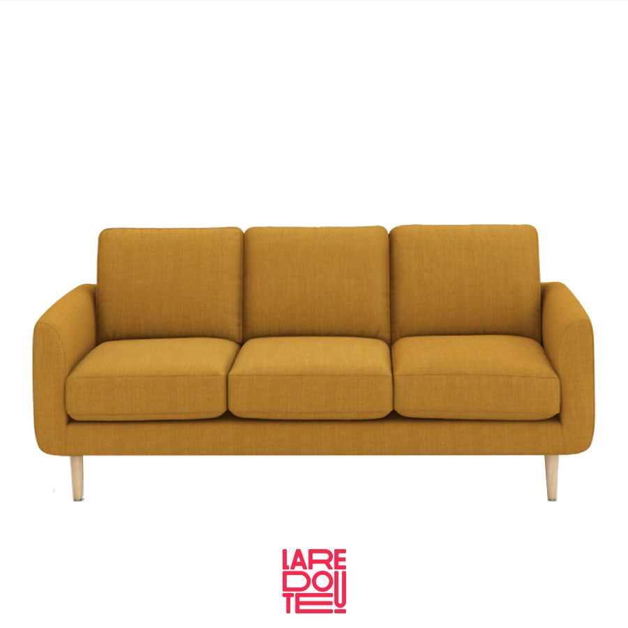 Cómodo sofá de 3 plazas en color mostaza con asiento muy mullido pero firme.