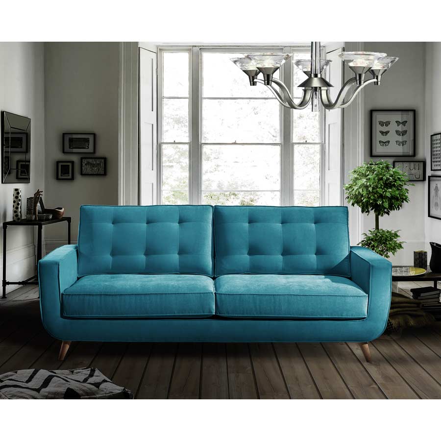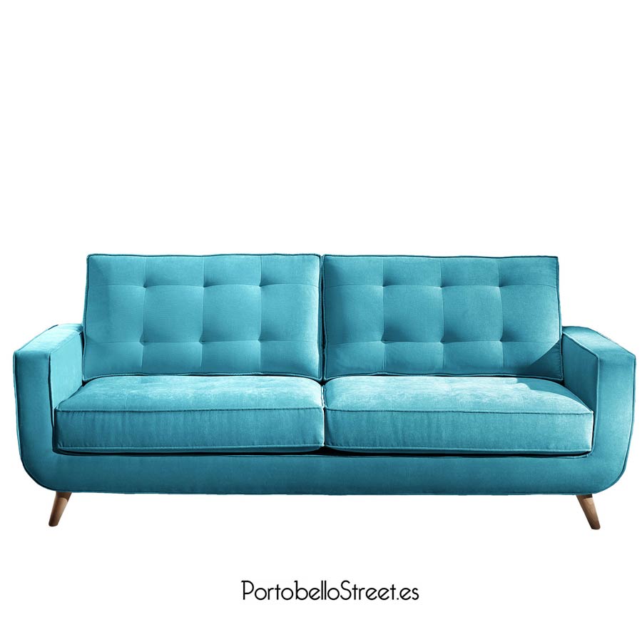 Elegante sofá retro de 2 plazas rosa que toma su nombre de la agencia de la famosa serie «Mad Men», en cuya época está inspirado. y sofisticado.