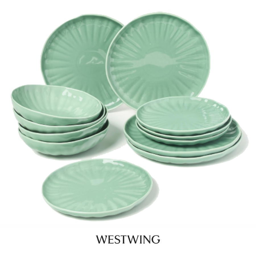 Está formada por 12 piezas: 4 platos llanos, 4 platos hondos y 4 platos de postre