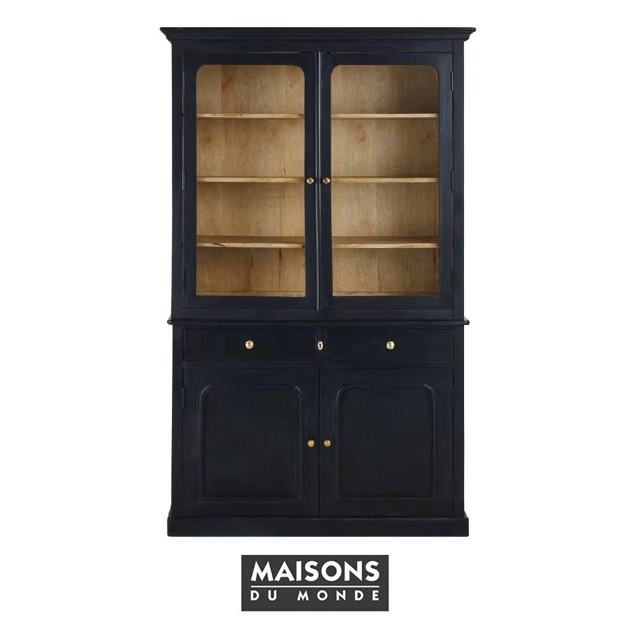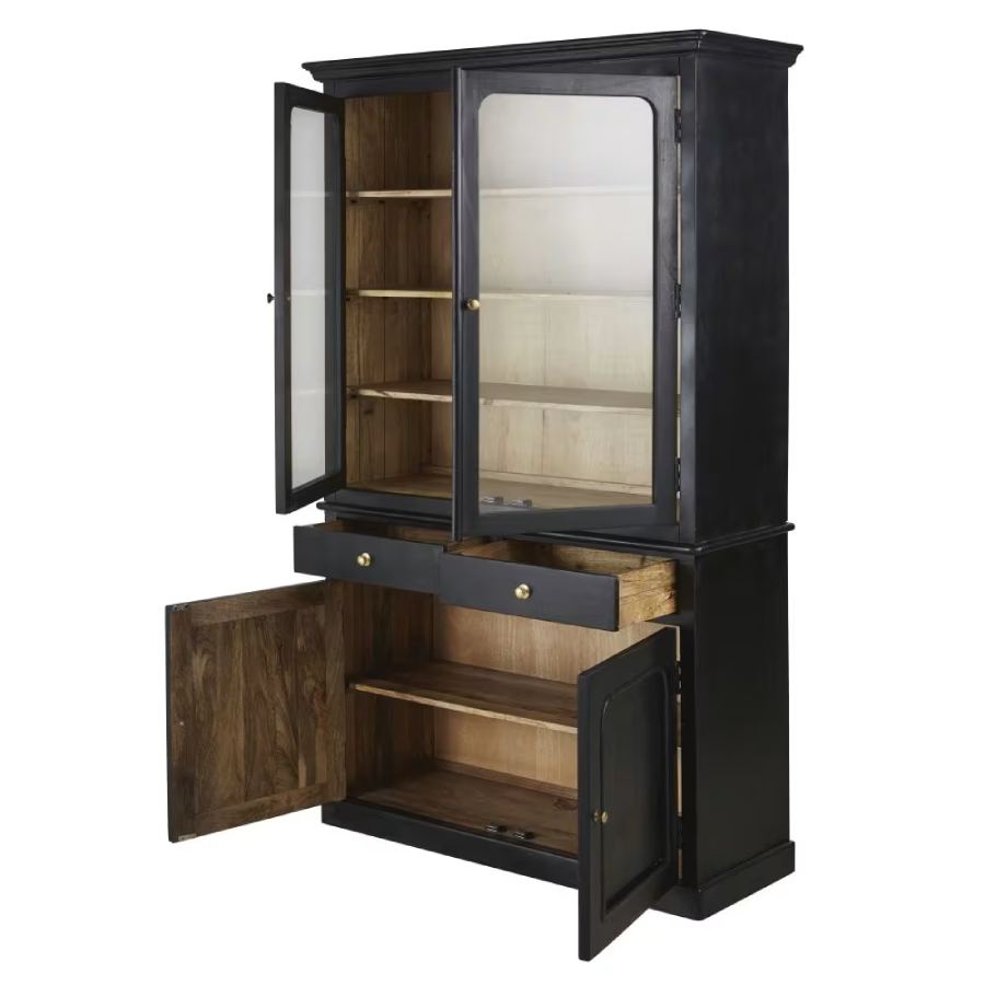 Elegante vajillero de madera e color negro con cuatro puertas y dos cajones. Un precioso mueble de estilo clásico chic que llamará la atención en tu comedor o cocina.