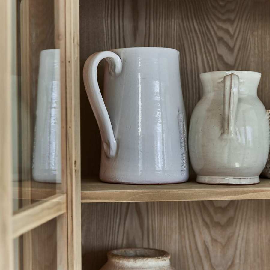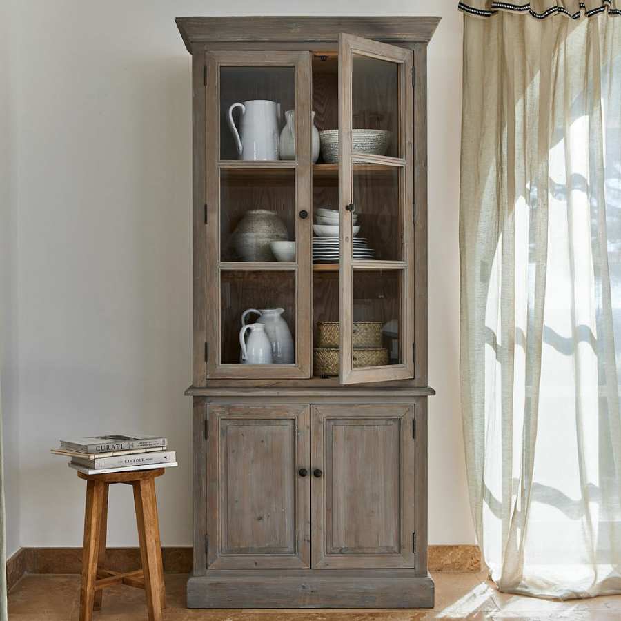 Magnífica vitrina fabricada con madera de abeto recuperada y acabado blanqueado aplicado a mano en la superficie exterior, lo que le confiere un aspecto desgastado que encaja perfectamente con los estilos de las casas de campo modernas. Las estanterías son extraíbles, ofreciendo funcionalidad y practicidad.