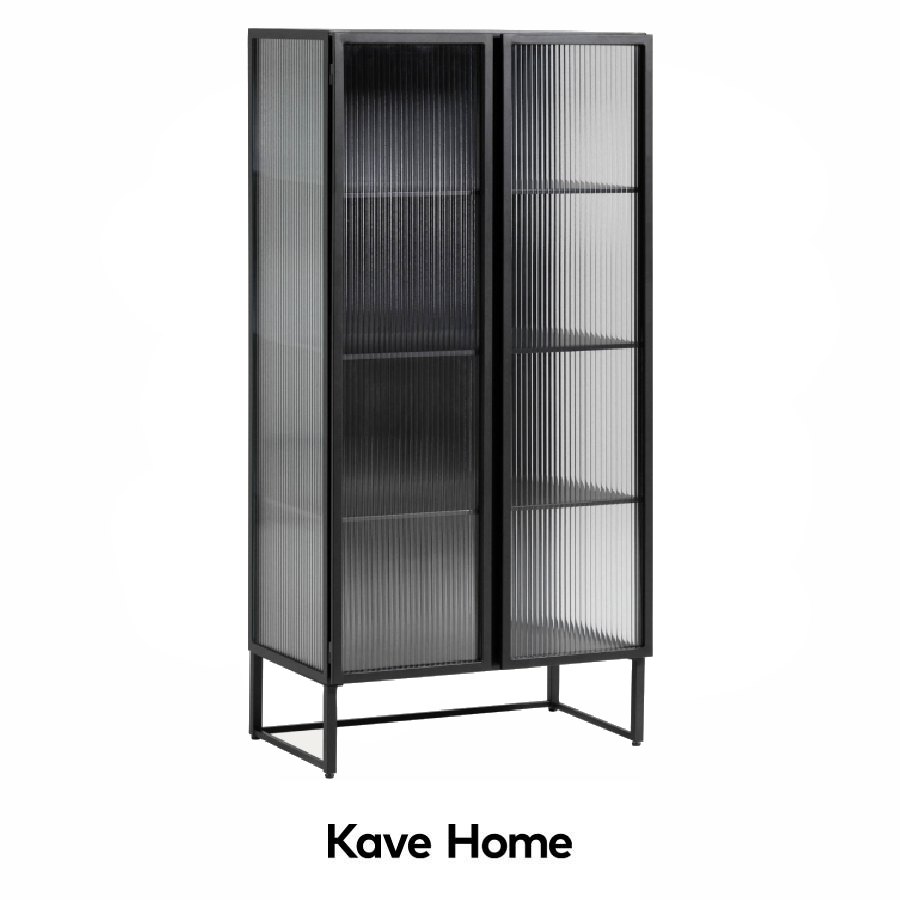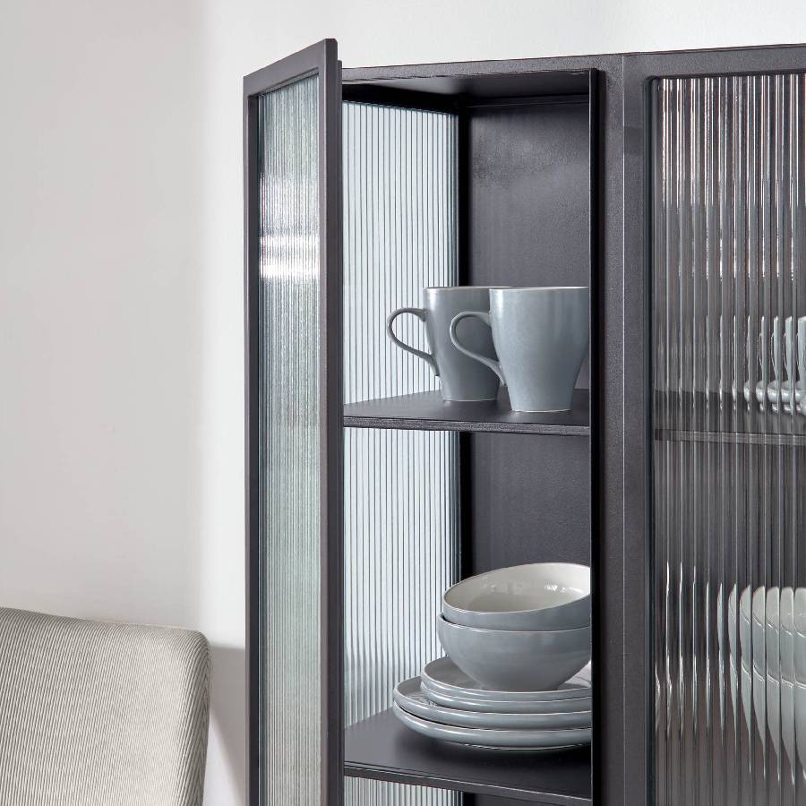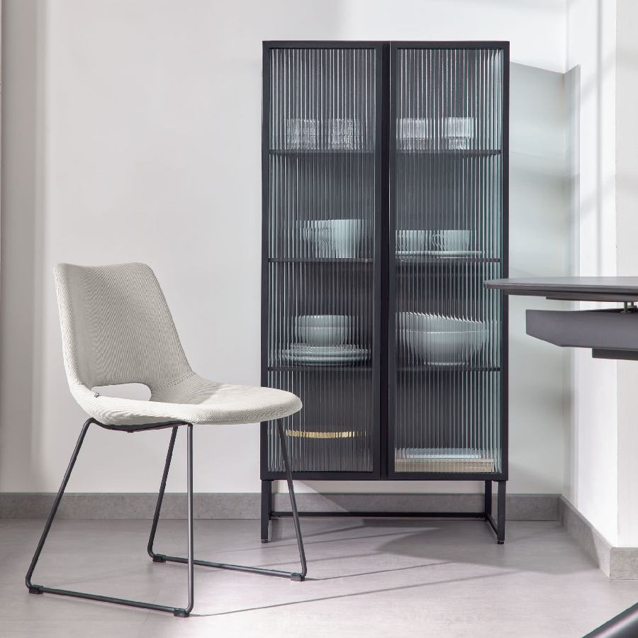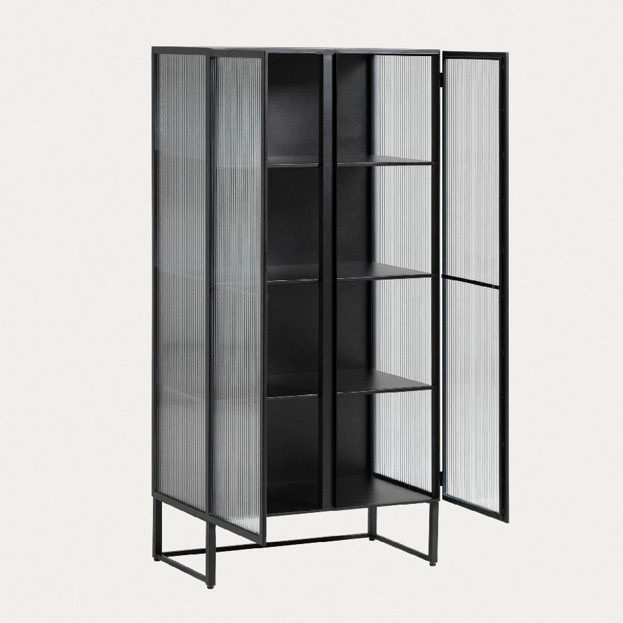 Vitrina de estilo industrial y minimalista, de acero con acabado en negro y cristal templado.